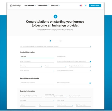 Une fois que vous avez obtenu votre diplôme et que vous commencez à travailler dans votre nouveau cabinet, la première étape consiste à remplir notre formulaire de nouveau praticien Invisalign.
